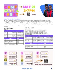 - Due to early starting dates on some programs advertised, there will be a special registration to accomodate them (examples include Preschool, Special Events, and Soccer League.)