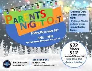 Looking for a free night to do some holiday shopping, date night, or even just a fun time for the kids? Our Winterfest Parent’s Night Out is the perfect excuse! So many activities and so much fun, your kids will have a blast! Call or register by Wednesday, December 8th. (Minimum of 6 children to run)